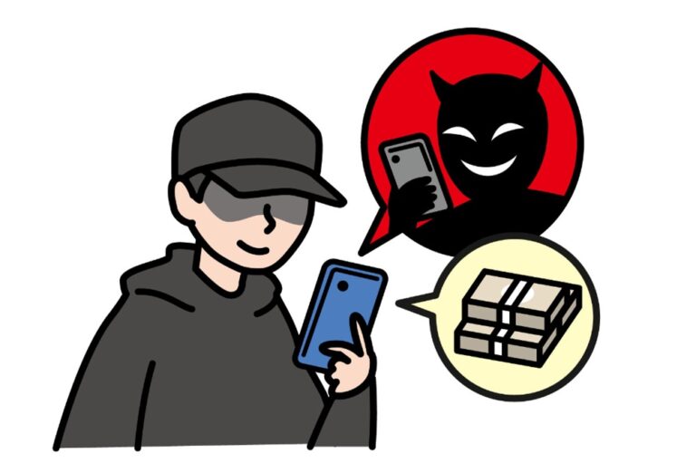SNSで「かんたんにお(かね)がもらえる」「(たか)いアルバイト」などのメッセージを()たときは、すぐに(もう)()んではいけません。(とも)だちや学校(がっこう)先生(せんせい)会社(かいしゃ)(ひと)相談(そうだん)したり、インターネットでくわしい情報(じょうほう)調(しら)べたりすることが大切(たいせつ)です。「名前(なまえ)使(つか)うだけ」「()()るだけ」と()いてあっても、(あぶ)ない仕事(しごと)かもしれません。「一度(いちど)だけ」と(おも)っても、また(おな)仕事(しごと)をしなければならなくなります。そして、いつか(つか)まってしまいます。