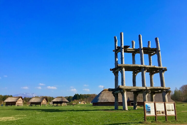 青森県(あおもりけん)は、(むかし)から人々がくらしていた場所(ばしょ)です。三内丸山(さんないまるやま)遺跡(いせき)をはじめとした多くの遺跡(いせき)があり、縄文時代(じょうもんじだい)文化(ぶんか)垣間見(かいまみ)ることもできます。2021年には「北海道(ほっかいどう)・北東北の縄文(じょうもん)遺跡(いせき)(ぐん)」として、世界文化遺産(せかいぶんかいさん)にも登録(とうろく)されました。