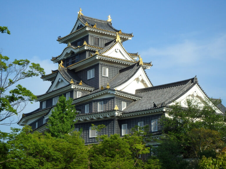 岡山城も後楽園とセットでとても人気のある観光地です。「烏城」とも呼ばれ、黒い外壁がかっこいいお城です。戦国時代の武将・宇喜多秀家が安土桃山時代(1597年)に築いたお城です。