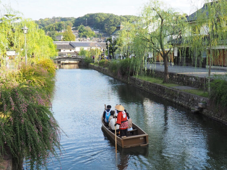 ここには 倉敷デニムストリート といって、倉敷発祥のデニム製品を扱うショップが並ぶ通りがあります。また、くらしき川舟流しという倉敷川を舟で巡り、昔ながらの町並みを水上から楽しめる観光体験もあります。