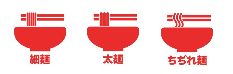(めん)種類(しゅるい)も、(ほそ)(めん)(ふと)(めん)、ちぢれ(めん)などがあります。