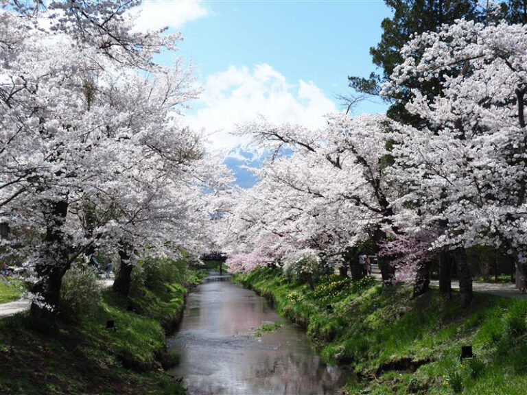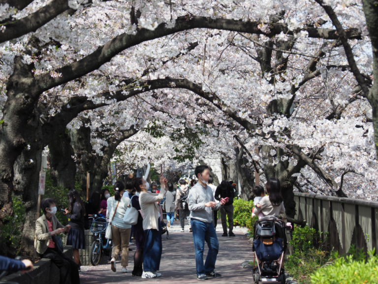 さくらとなの(はな)がたくさんさいて、人気(にんき)があります。